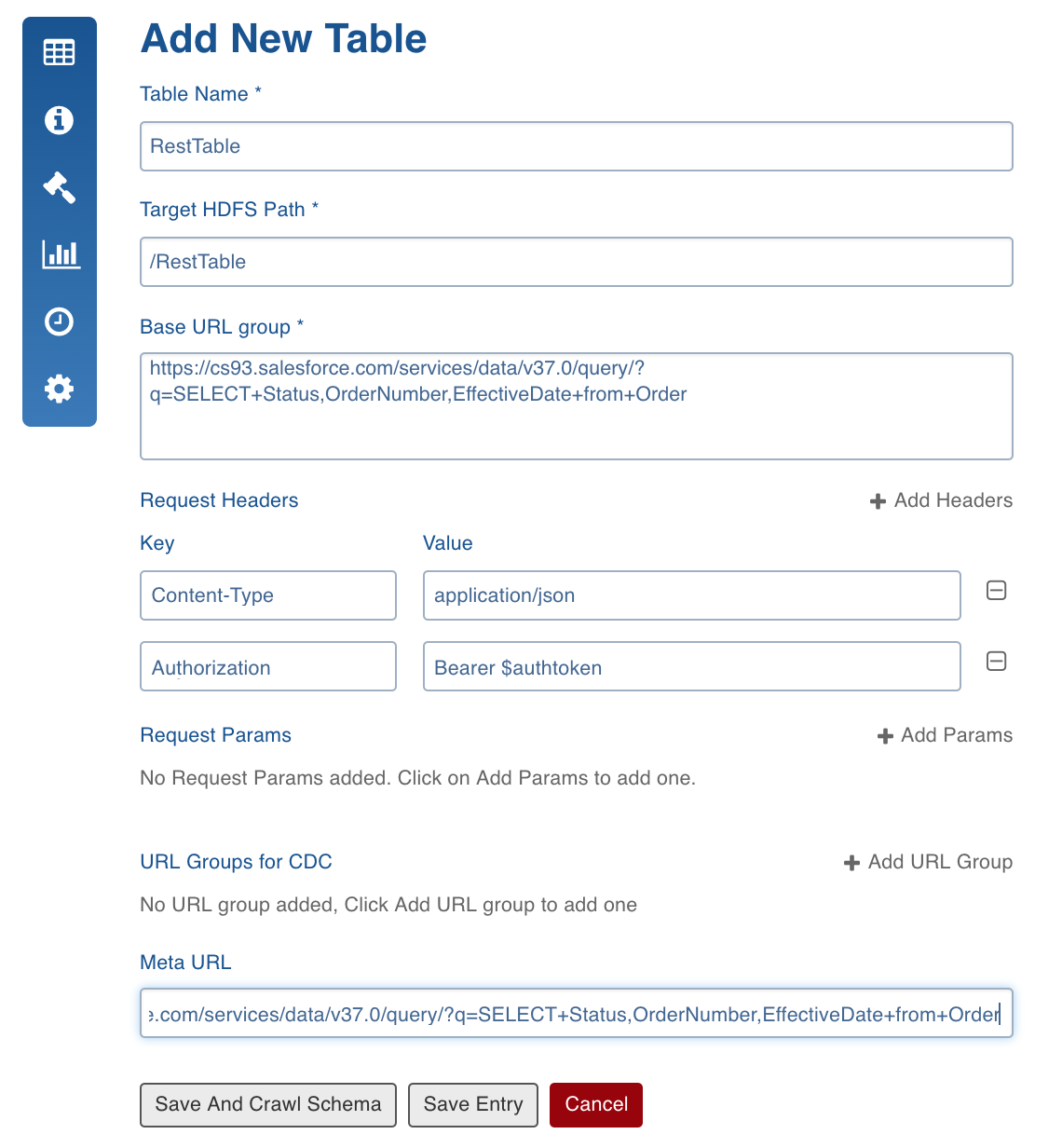 - Meta URL: Meta URL is useful in retrieving metadata response with same JSON schema as that of base or CDC URL groups.
