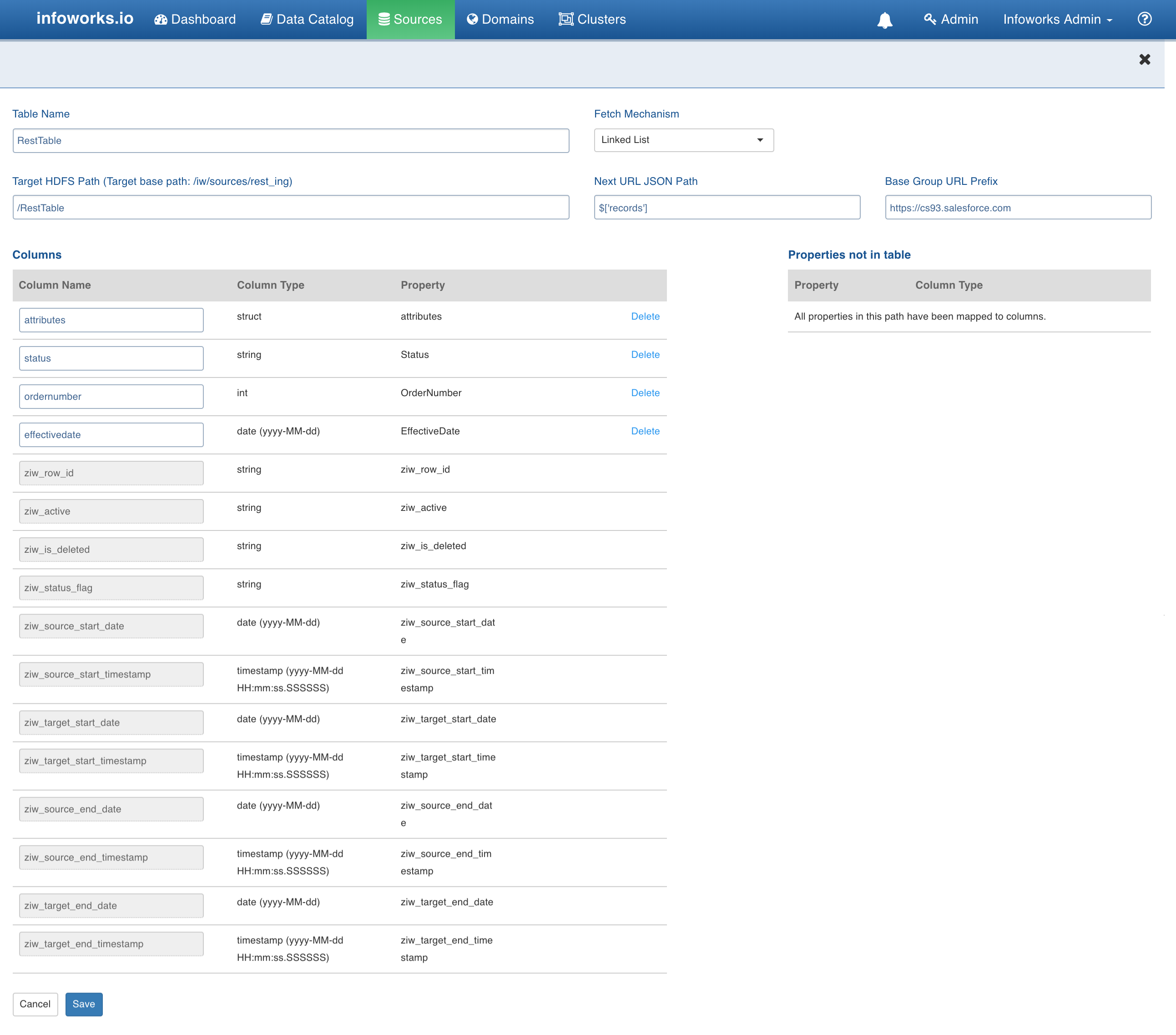 In the Admin section (Admin > Source > New Source), create a source and select the source type as Rest-Generic. Enter the Hive schema name and HDFS location.