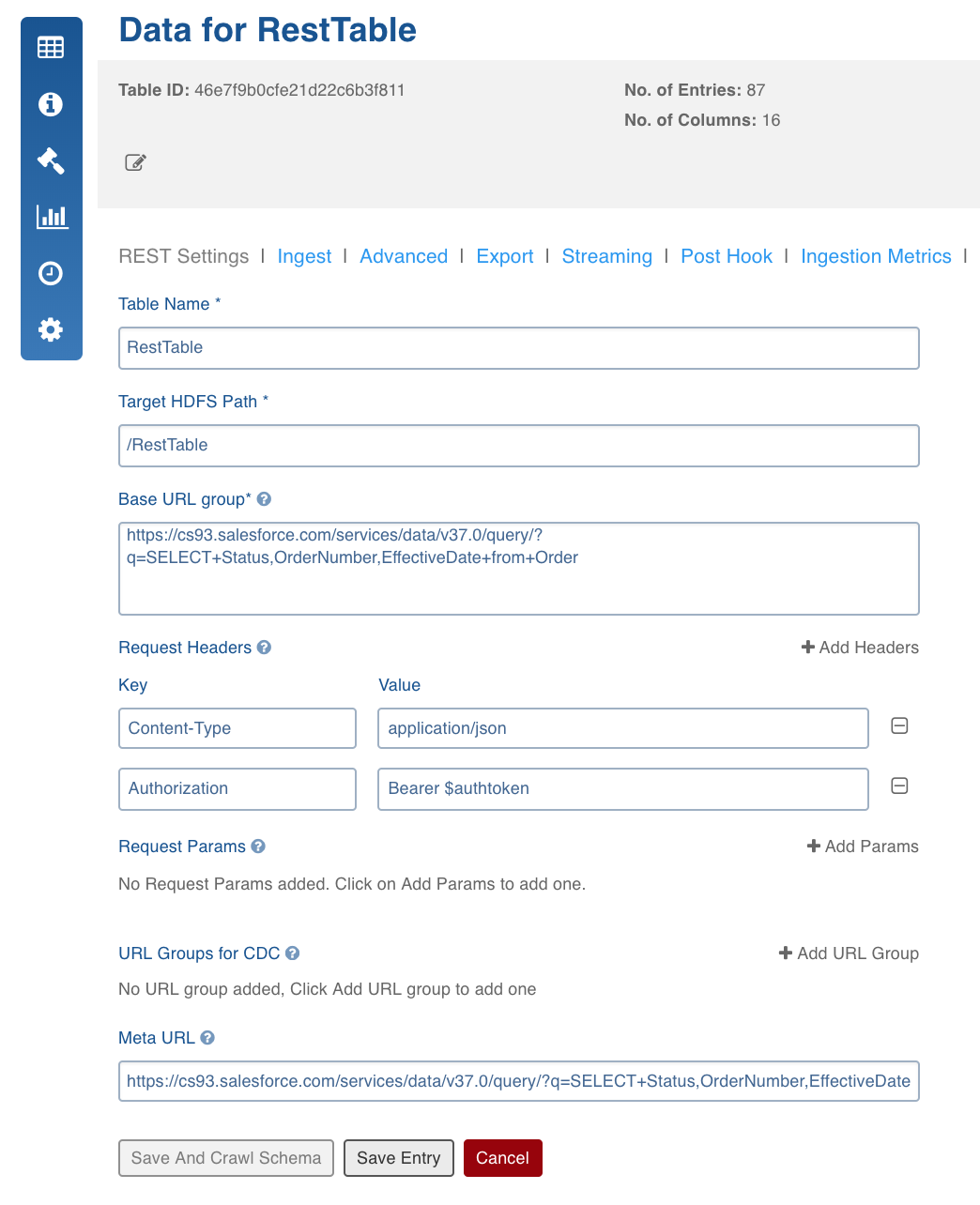 URL List: Collection of URLs having the same JSON schema, request headers and request params. Response will be obtained from each URL and will be ingested.