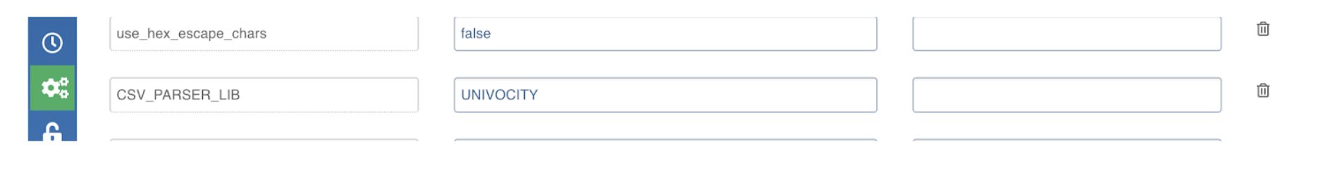 - In the Infoworks DataFoundry landing page, navigate to Admin > Configuration. Change value of CSV_PARSER_LIB property from COMMONS to UNIVOCITY.