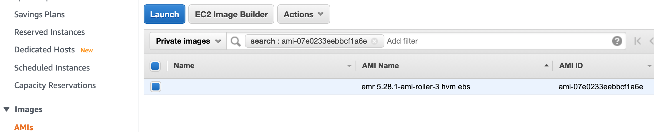 - Select Private Images in the drop-down list, search for ami-07e0233eebbcf1a6e, and click the Launch button.